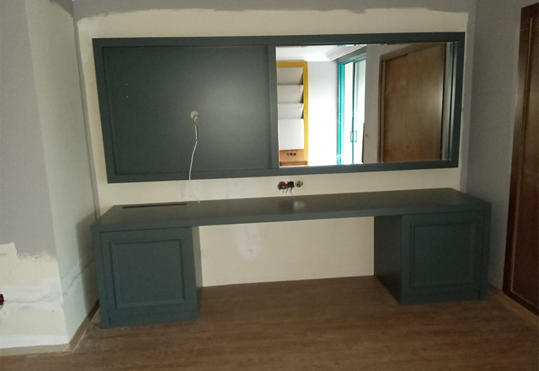 Antalya Side Yeşilöz Otel'e yapmış olduğumuz otel odası mobilya çalışmalarımız. Lake TV ünitesi ve makyajlık.